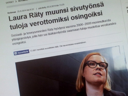 Yle uutisoi sosiaali- ja terveysministeri Laura Rädyn (kok.) verojärjestelyistä, joiden avulla hän sai muutettua Mehiläisen lääkärinä saamiaan tuloja verottomiksi osingoiksi ja kevyemmin verotetuiksi luontoiseduiksi. Median hampaissa ovat olleet aiemmin Mehiläisen lisäksi terveyspalveluja tuottavat yritykset Terveystalo ja Attendo, joiden omistajat maksavat kannattavasta liiketoiminnasta huolimatta vain vähän veroja toimintamaihinsa. Esimerkiksi Finnwatchin viime vuotinen selvitys paljasti Attendon toimineen Suomessa vahvasti velkarahalla, minkä vuoksi konsernin verotettavat voitot olivat valuneet velkojen maksuina ulkomaisiin veroparatiiseihin.